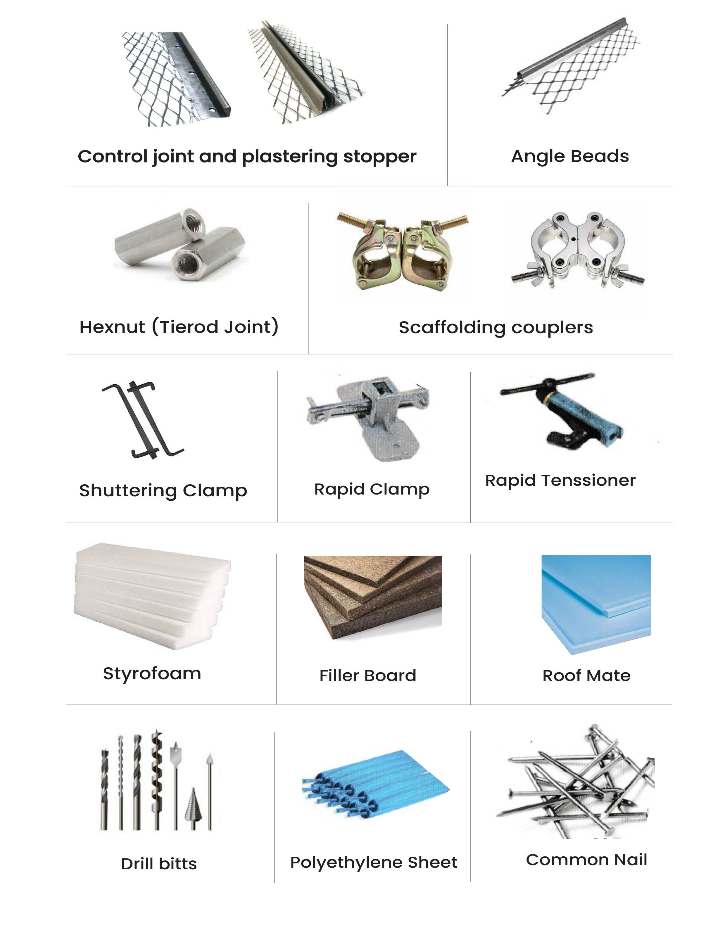 Premium quality sheets, boards, insulation materials, scaffolding accessories, ropes, mesh, and construction support products for all project requirements.