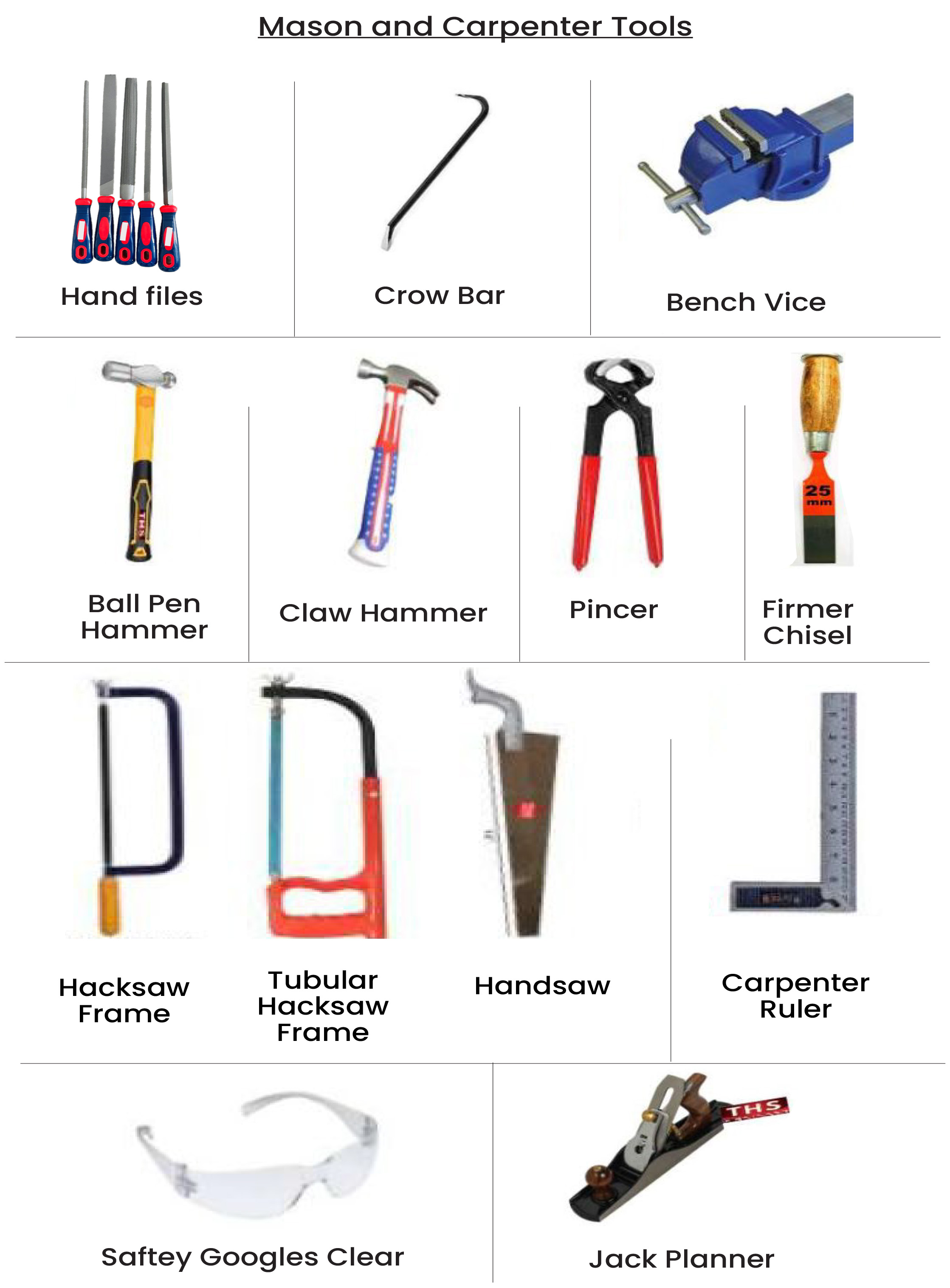Professional power tools, measuring instruments, hammers, cutters, clamps, workshop tools, and heavy-duty industrial equipment.